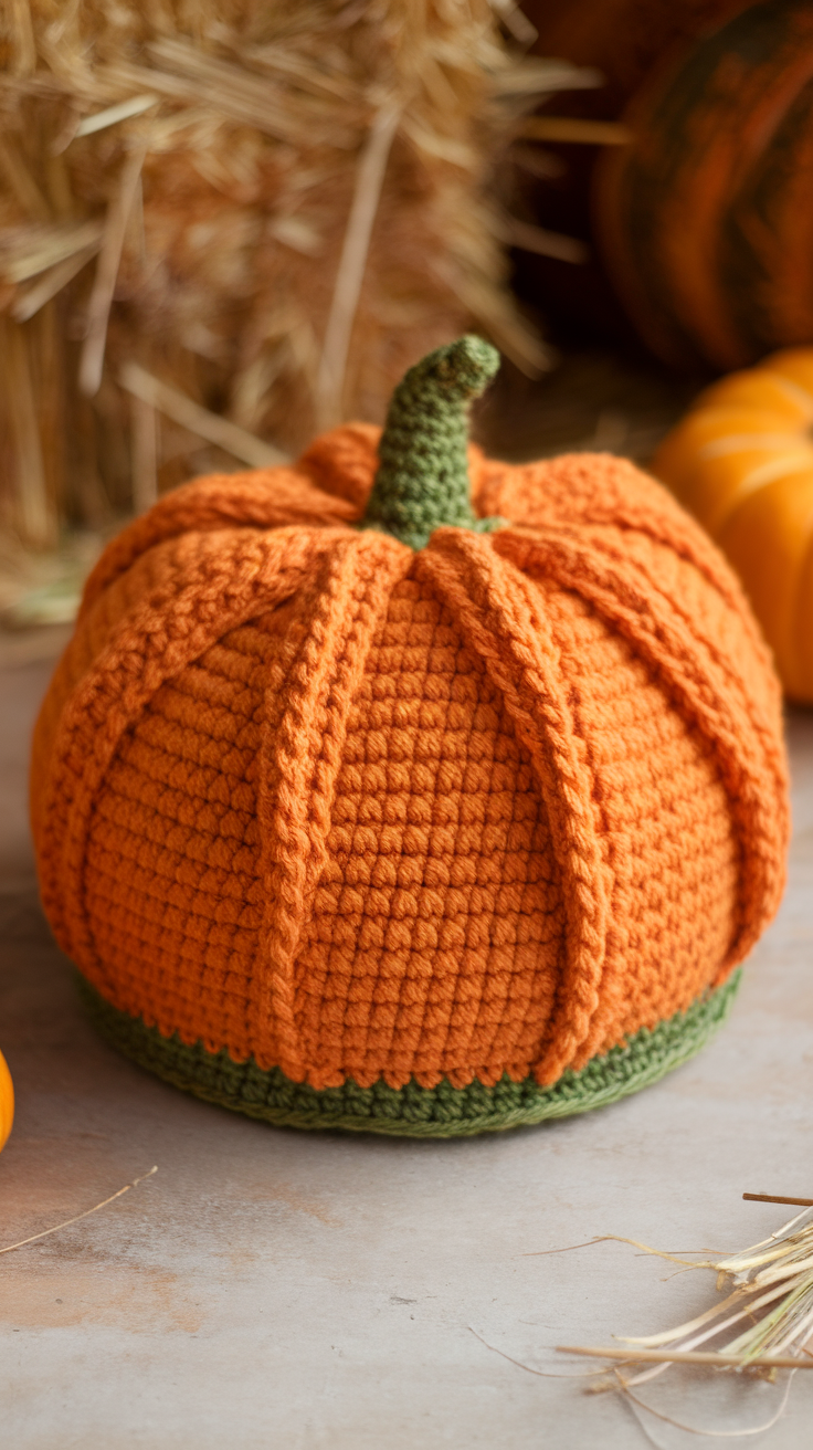 A crochet pumpkin hat pattern is a fun and festive design for fall. The ridged texture mimics the shape of a real pumpkin, making it a great seasonal accessory.